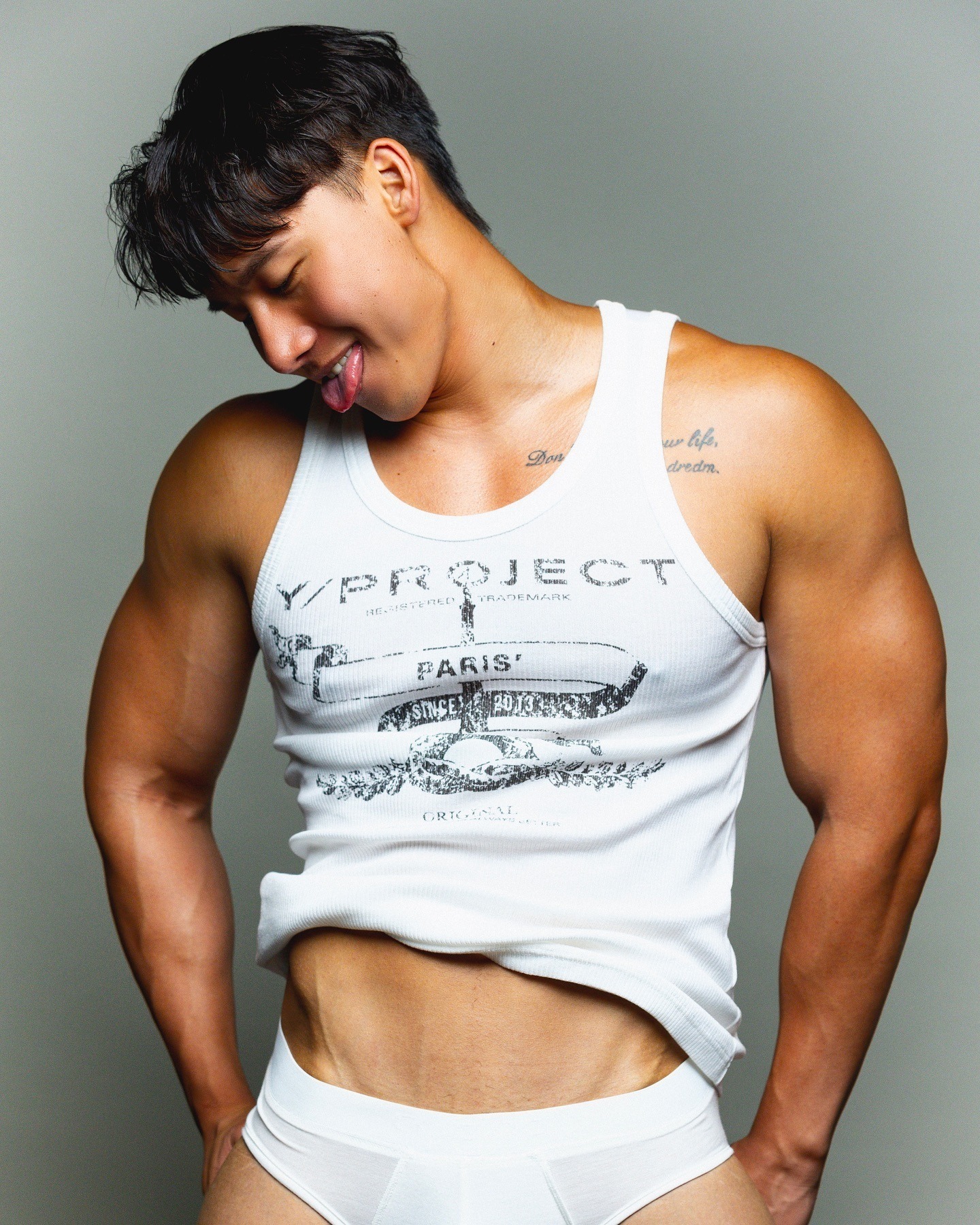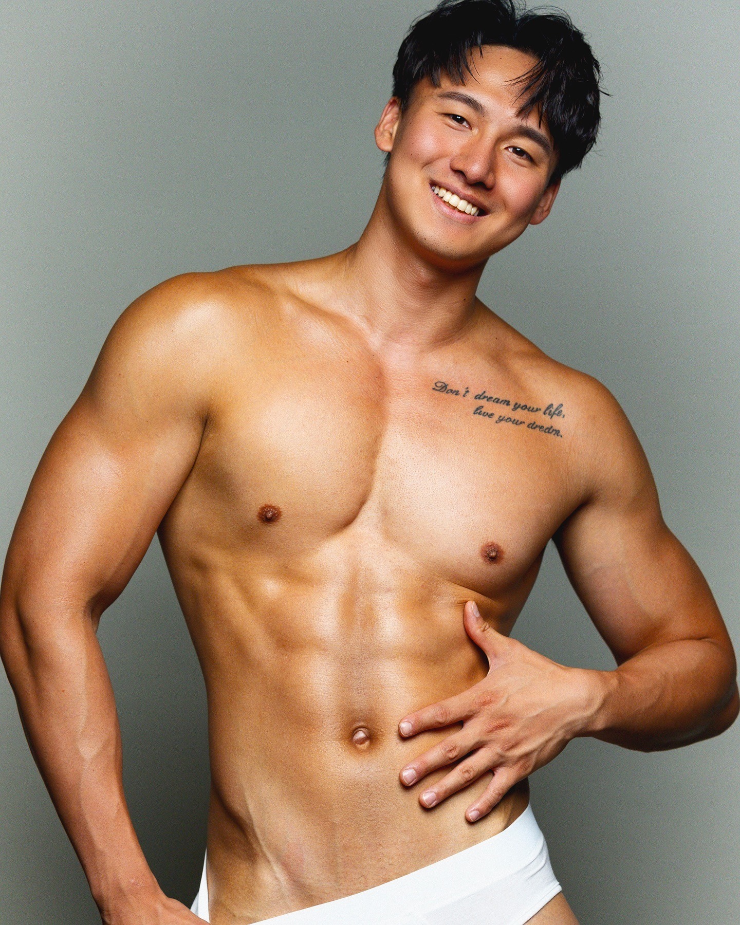 178CM 的高挑身形,80KG 的厚實體態,寬肩貼近時幾乎能把你整個籠罩。那不是刻意炫耀的肌肉,而是帶著溫度與力量的陽剛線條。當他的手掌落在你背上,重量與熱度同時覆上,你會本能地放慢呼吸。
